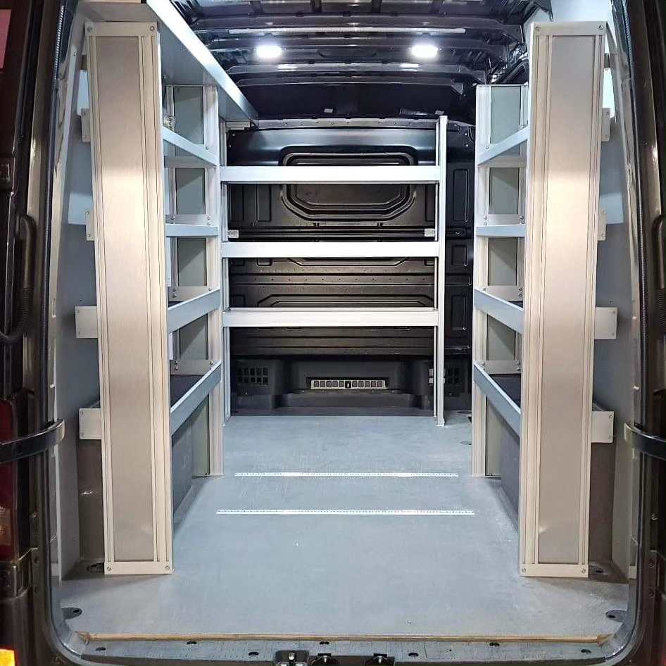 Dit kunnen wij realiseren door maatwerk in eigen atelier vanuit onze voorraad alumium profielen en plaatmateriaal. Wij hoeven dan ook geen heel gamma op voorraad te houden, wat onze kosten aan opslag beperkt. Ook de transpostkosten komen niet per inrichting, maar worden verdeeld over 20+ inrichtingen. Zo kan u bij ons een hoogwaardige lichtgewicht inrichting aankopen tegen een schappelijke prijs. Op die manier wordt de terugverdientijd voor u tot een miniumum herleid.